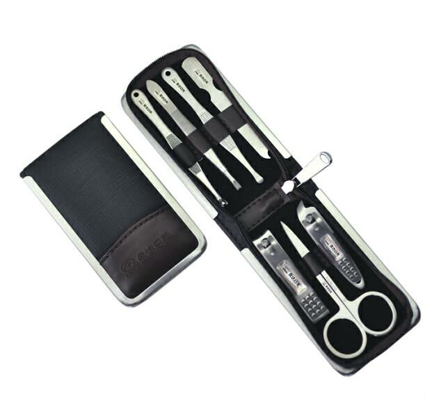 The displayed manicure set includes 7 manicure tools packaged in a protective pouch. The tools come in a metallic construction and flaunt excellent durability and sharpness. This manicure set offers good nail care and is convenient to carry everywhere.