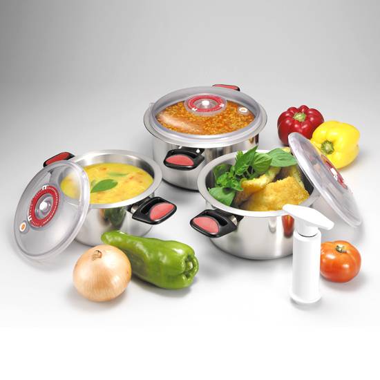 This set of vacuum containers helps keep your food fresh and tasty. The set is equipped with a manual vacuum pump that sucks out the air in the containers, creating a vacuum space inside. Without air, the food can stay fresh and clean longer than usual. On top of the lid is a date reminder to help you remember the date of storage.