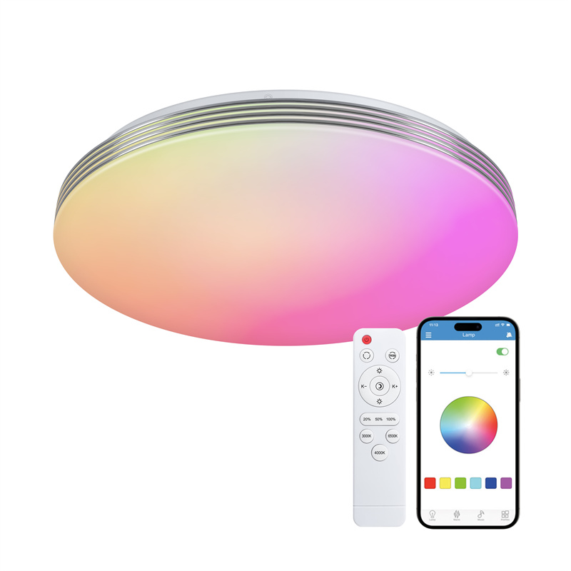 Popular smart ceiling light supports APP control, bluetooth / WIFI control and wall switch. RGBIC different color light effects fit different life scenes. It has a build in bluetooth speaker, the light can sync with the rhythm. It's good for daily use and party time, and some special scenes.