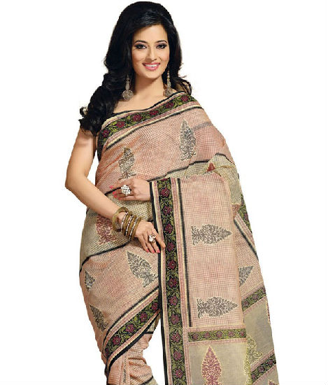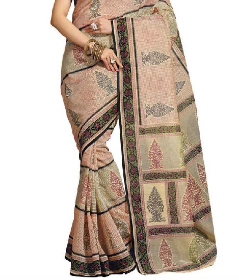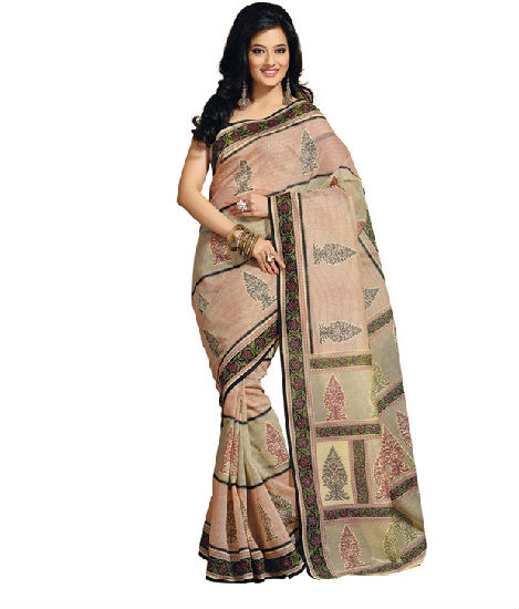 Devise the Ethnic look for you and gather all the fashion essentials from right here. The Cream colored saree and a similar colored blouse are you base makers while the cotton fabric is you shield to the summers. The glam quotient is added by the unique geometric print making it a total party wear design.