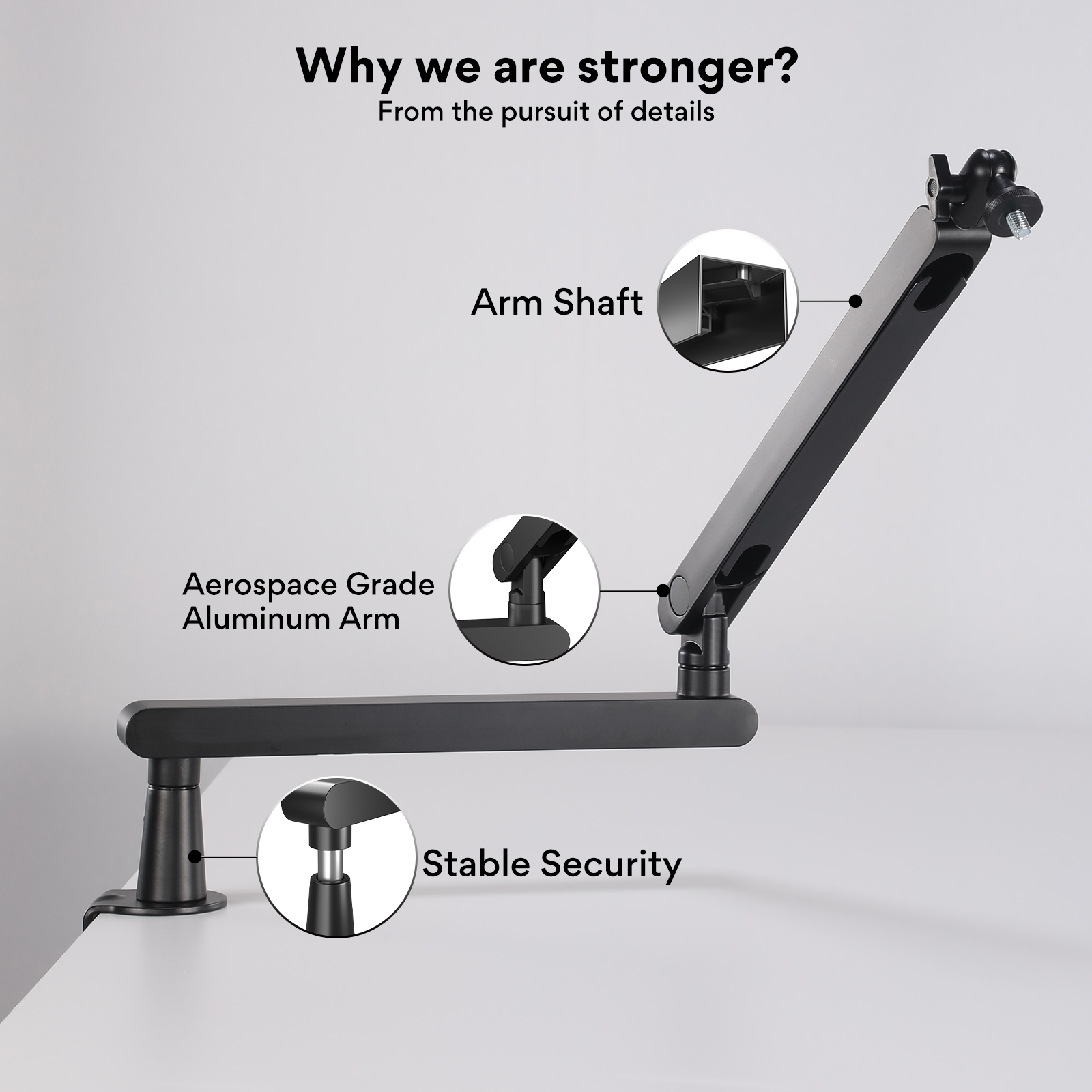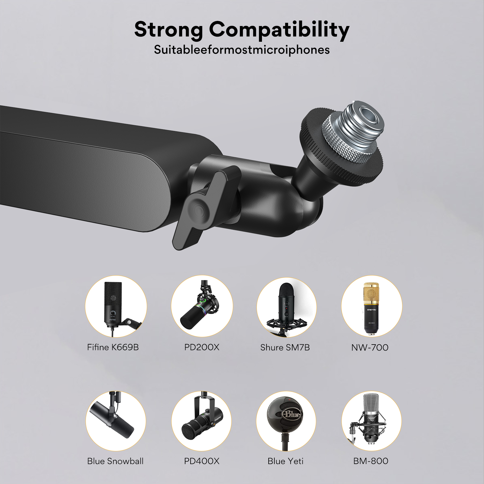 Rotatable and Adjustable: This boom arm is designed for the microphone to be fully adjustable and offers a 360° rotation for the microphone,