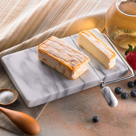 This marble cheese slicer has a smooth, polished surface that will not absorb moisture and odors. They can be easily fitted in with various kitchen designs. The genuine marble cheese slicer helps you cut your cheese into equal slices with minimal effort.