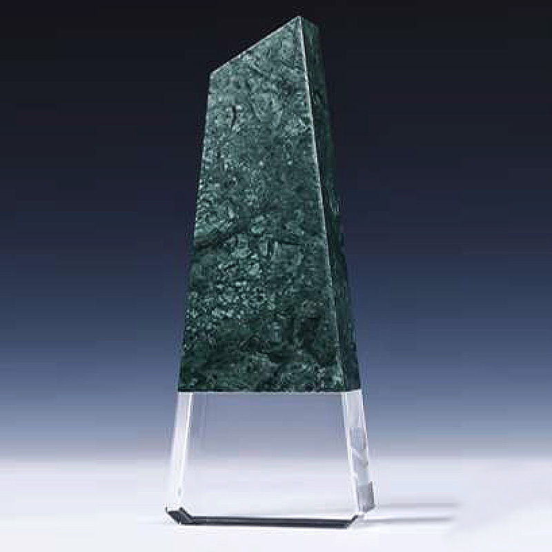 This unique freestanding award features beautiful green marble.