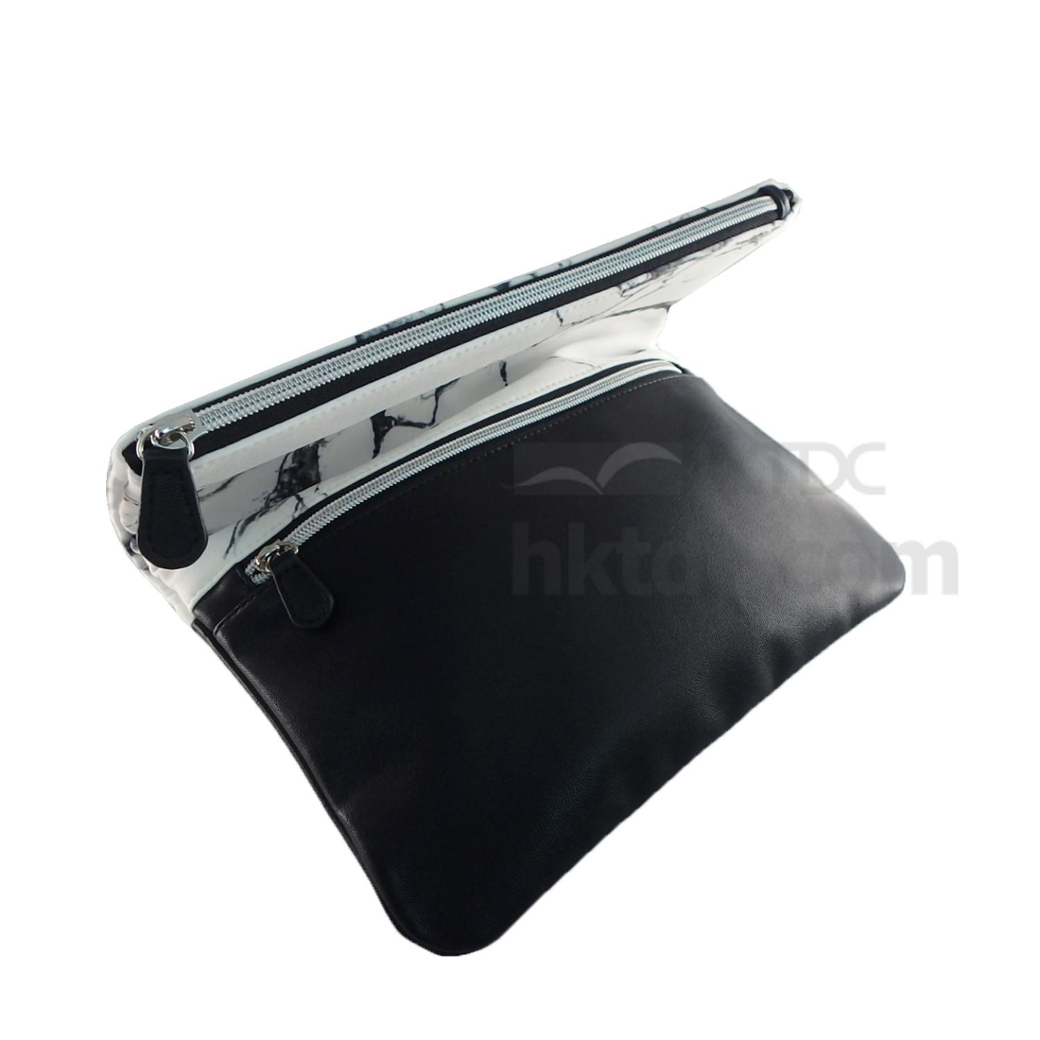 Spice up your work and downtown edit with this balanced and chic marble clutch. This foldover clutch features an elegant marble print on top and matched to a simplistic, dark-colored design at the bottom for a trendy and versatile look that complements most outfits and can be worn on various occasions. Coming in just the right size, it can also hold all your essentials without turning too bulky. Go from your work desk to dinner dates, workdays to weekends with this fashionable clutch.