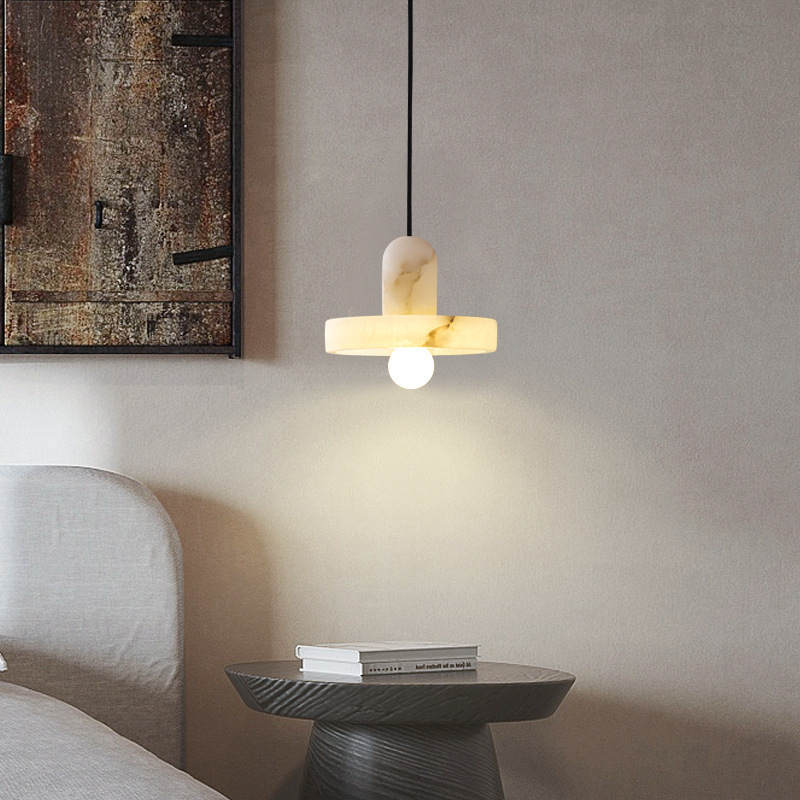 Marble Shade Natural Stone Ceiling Hanging Lamp Mid Century Chandelier Nordic Modern White Pendant Light for Kitchen Island Dining Room Farmhouse Bedroom Bar Living Room(18CM)