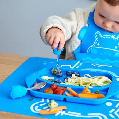 Parents found that their kids would get frustrated with the longer fork & spoon set and lose their appetite. We shortened our regular fork and spoon set and turn the handle 90 degrees so the utensils will fit more easily into a toddler’s palm grip. This makes self feeding easier and much more enjoyable for junior before they transition to our regular Kid’s fork & spoon set. Choose from Marcus the Lion Cub, Pokey the Piglet, Lola the Giraffe, Ollie the Elephant, Willo the Whale and Lucas the Hippo.