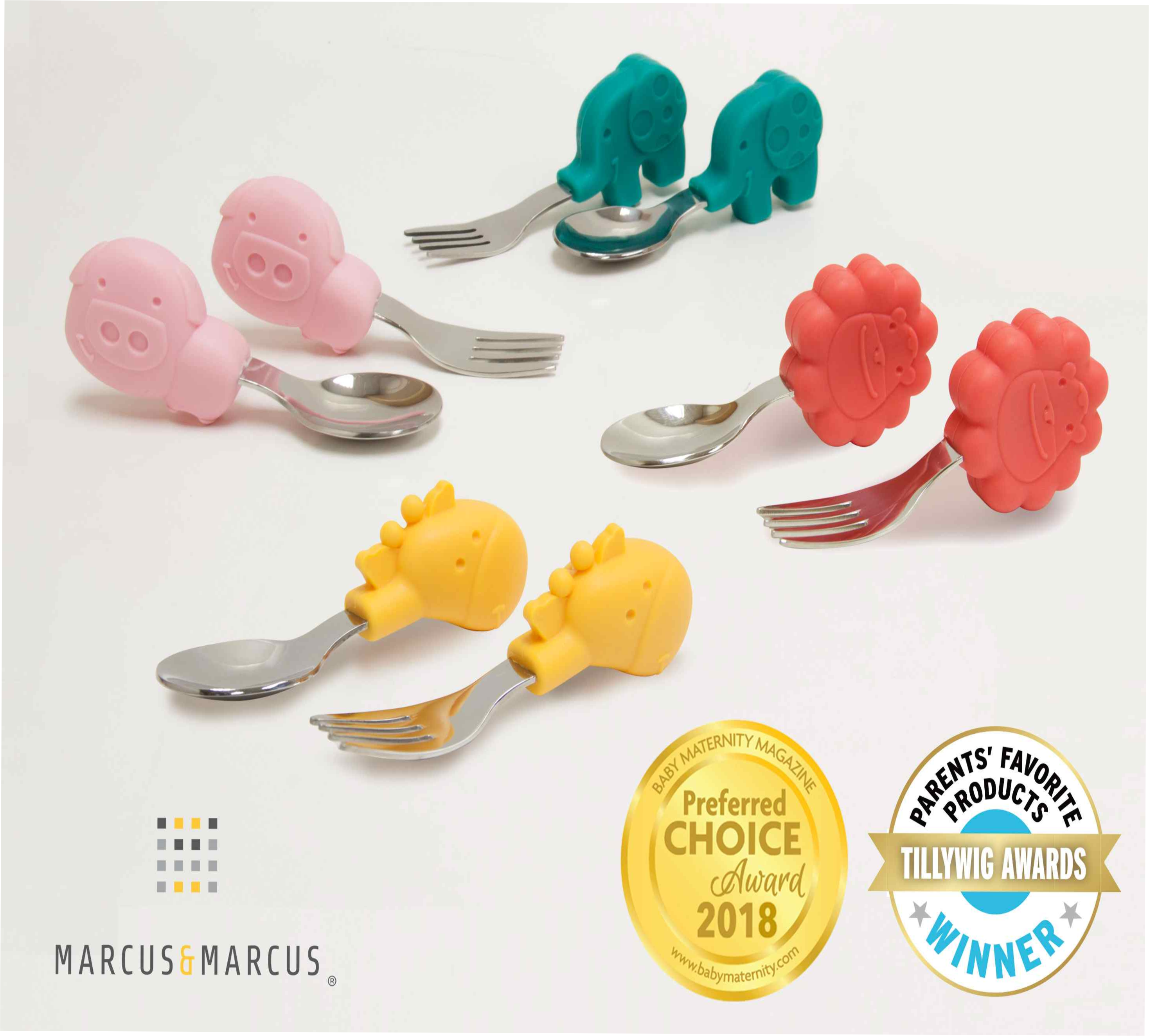 Parents found that their kids would get frustrated with the longer fork & spoon set and lose their appetite. We shortened our regular fork and spoon set and turn the handle 90 degrees so the utensils will fit more easily into a toddler’s palm grip. This makes self feeding easier and much more enjoyable for junior before they transition to our regular Kid’s fork & spoon set. Choose from Marcus the Lion Cub, Pokey the Piglet, Lola the Giraffe, Ollie the Elephant, Willo the Whale and Lucas the Hippo.