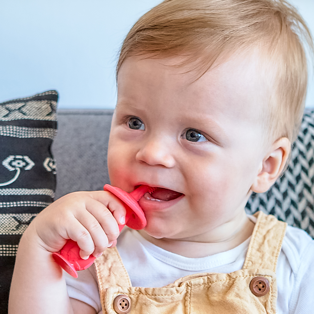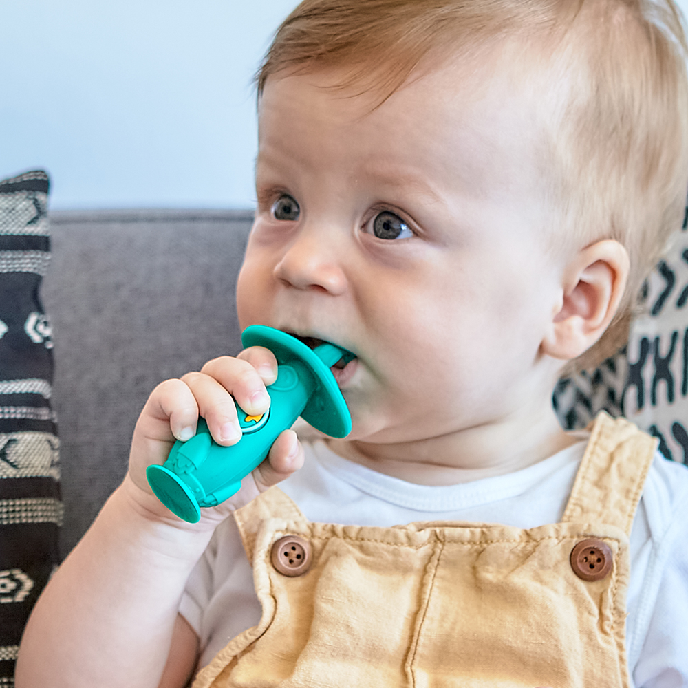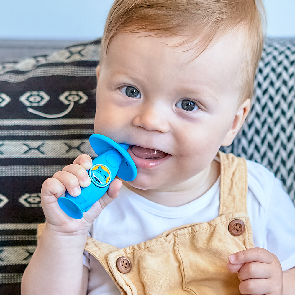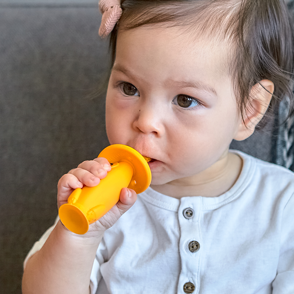 With the 360° around brush head, it makes it extra easy for toddlers to clean their teeth effectively and massage their own tongue. The toothbrush head is made from food grade silicone with wide strokes that is so soft to protect their tender gums. The 360° Toothbrush comes with the protection shield which prevents the toothbrush from going too deep into the mouth.