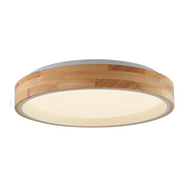 This is a circular ceiling light. The edge of the lamp body is made of spliced solid wood, presenting natural wood texture and warm color, giving a simple and comfortable feeling. The central light - emitting area can emit soft warm light. The overall style tends to be natural and simple, suitable for installation in home spaces such as living rooms and bedrooms, and can create a warm and natural lighting atmosphere, fitting home decoration styles like Nordic and Japanese styles that emphasize natural elements.