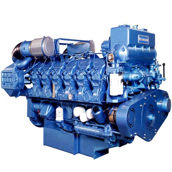 This is a marine diesel engine featuring turbocharged and intercooled intaking method. It is powered by a 12M26SRP diesel engine. This high-performance marine diesel engine is suitable for trawlers, passenger vessels and transport ships.