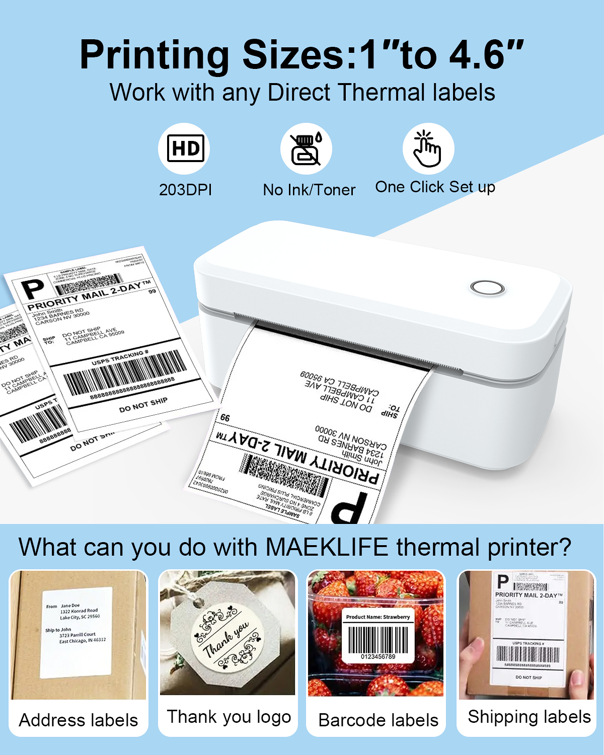 Marklife X4 Shipping Label Printer Wireless Thermal Printer Waybill Label Printer 4x6 Printer