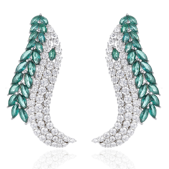 Marquise Green Nano And Round White Cubic Zircon Rhodium Silver Earring