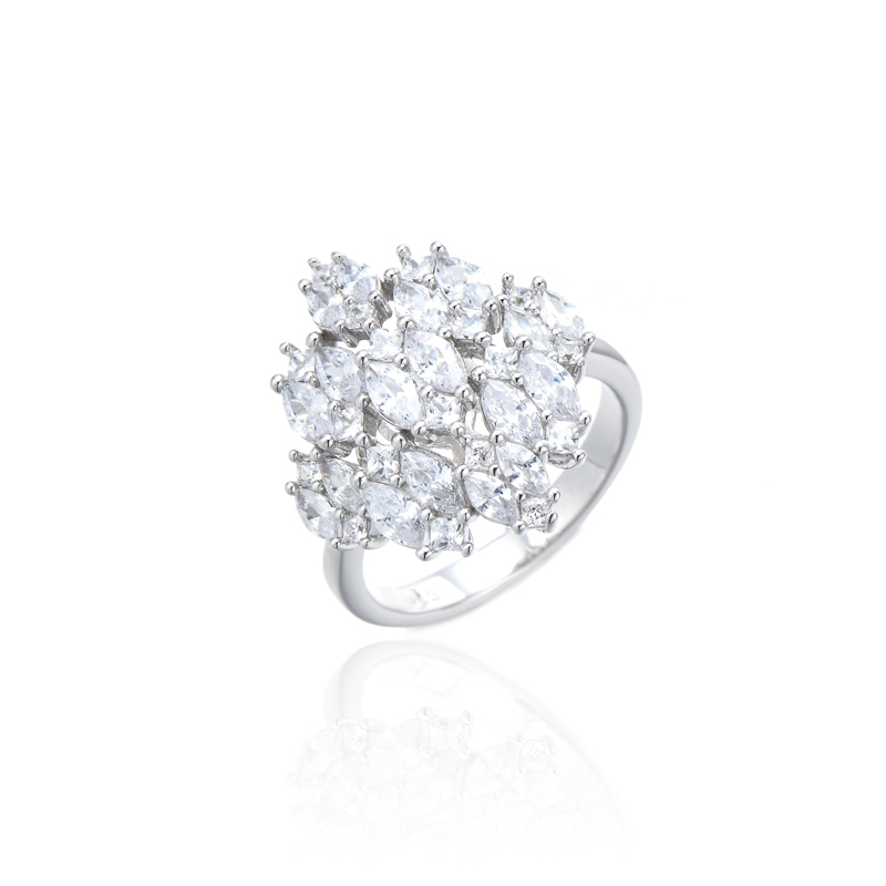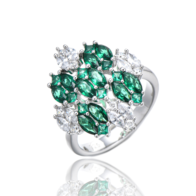 Marquise Green Nano And White Cubic Zircon Rhodium Silver Ring