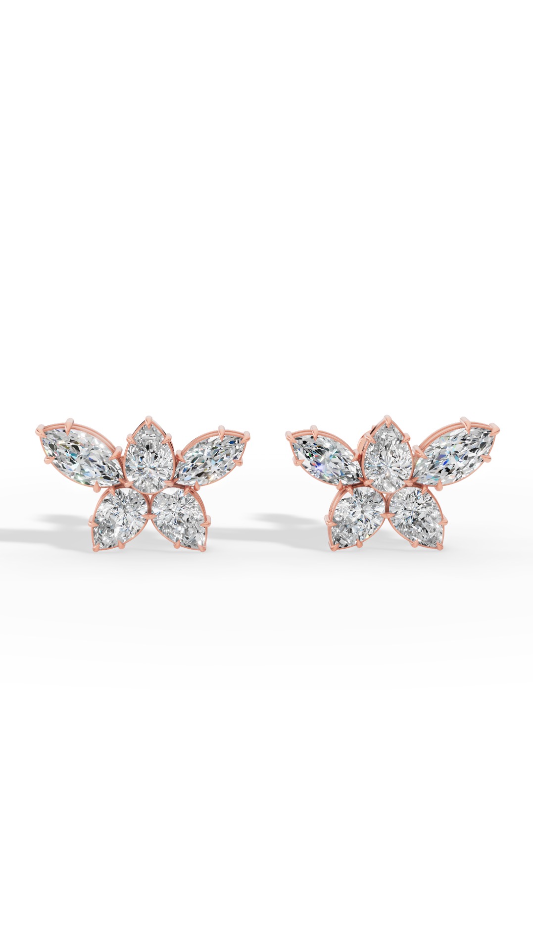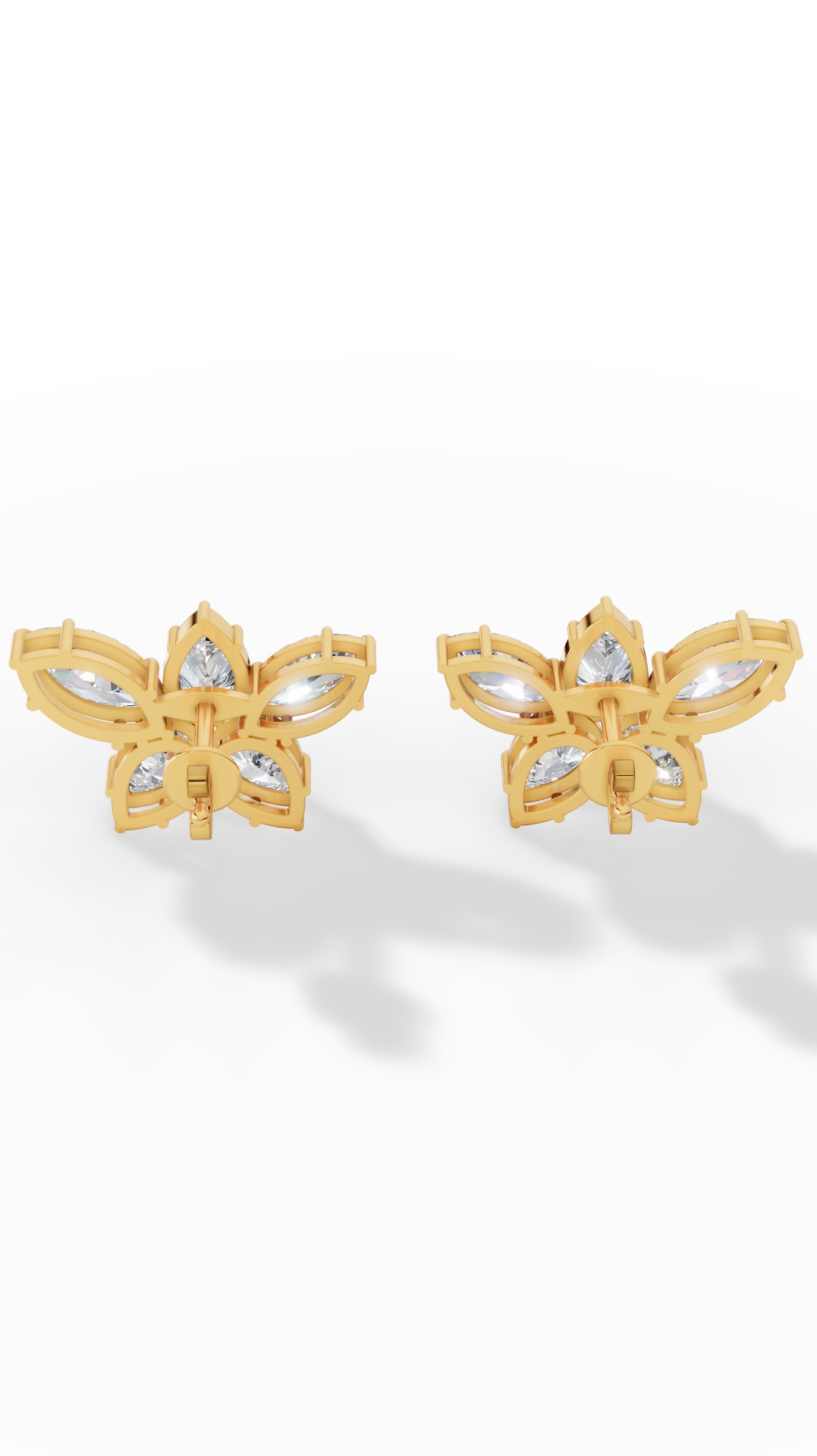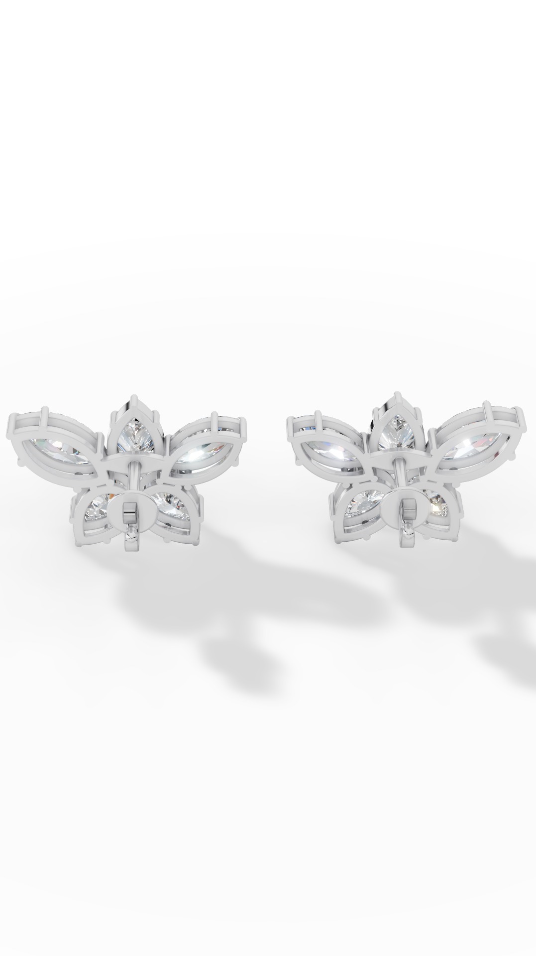 The stud earrings feature a stunning marquise cut, showcasing an elongated shape with brilliant sparkle, offering timeless elegance and sophisticated style for everyday or special occasions.