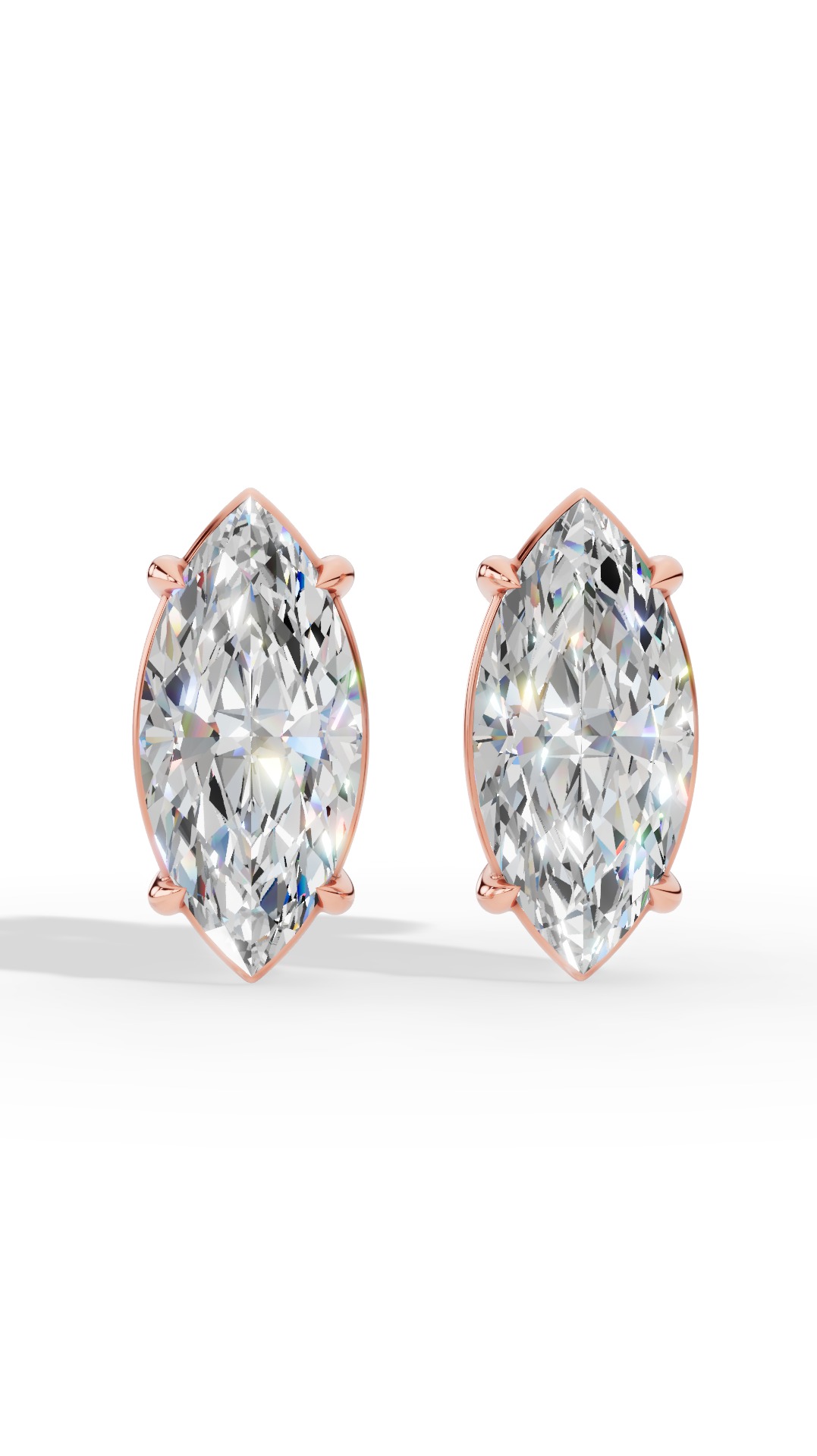 Elegant marquise cut solitaire lab-grown diamond studs, offering brilliant sparkle and timeless sophistication. Perfect for everyday wear or special occasions, they combine ethical craftsmanship and stunning design for a refined look.