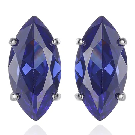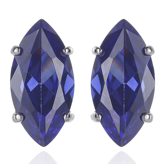 Marquise Tanzanite And Round White Cubic Zircon Rhodium Silver Earring