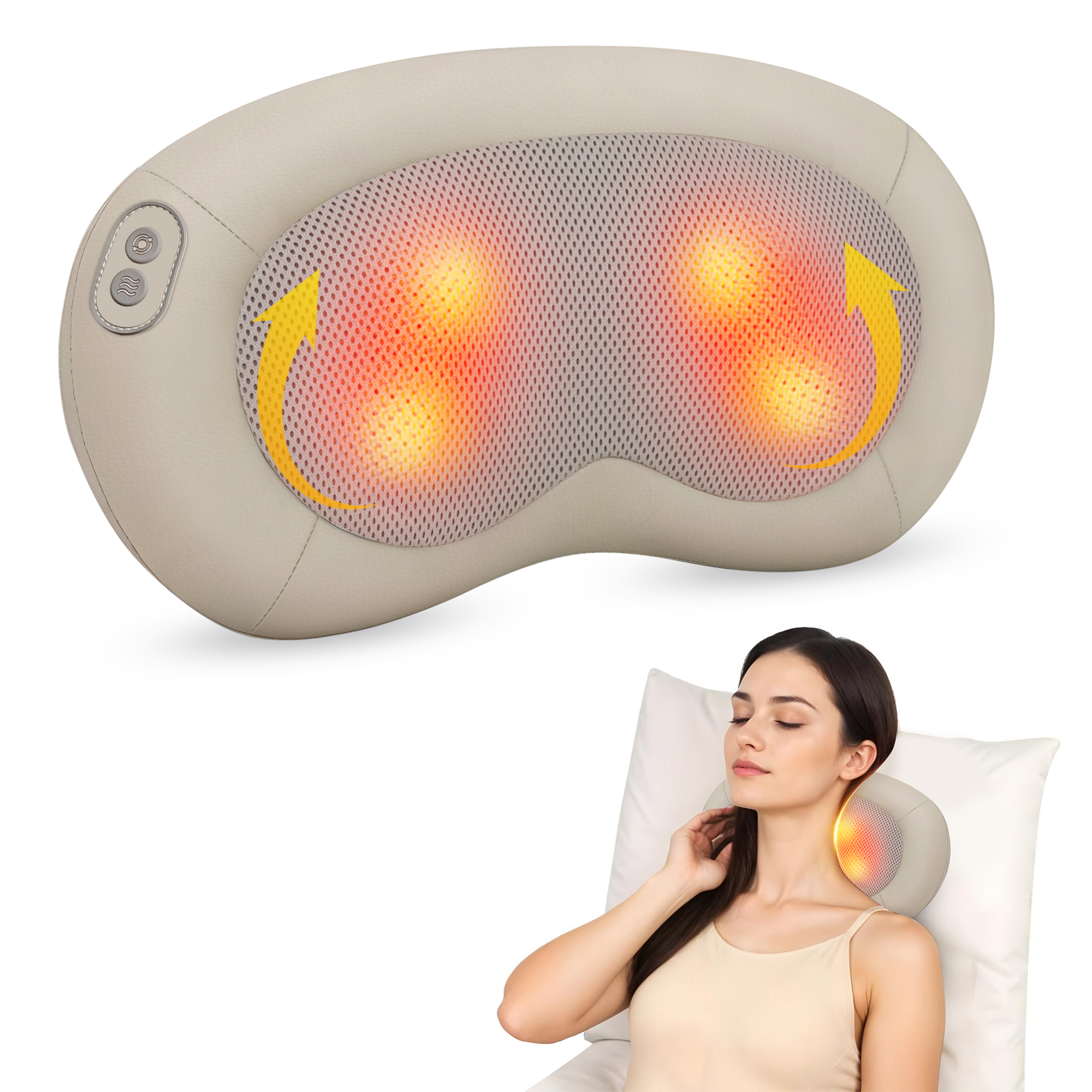 This Massage Pillow boasts a compact, ergonomic design to ease fatigue and relax muscles anywhere in a room. Featuring Shiatsu rotating heads, soothing heat therapy and auto-switching rotation, it delivers a balanced and comfortable massage experience. With a rechargeable battery, USB charging and elastic strap, it is perfect for use anywhere at home or on-the-go.