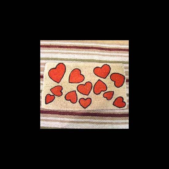 • The background colour of the mat is white whereas the colour of the hearts are red