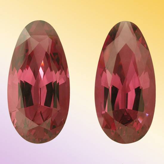 This is a pair of matched spinel stones. The beautiful spinel stones has a red and transparent colour with little inclusions. The matched pair shows the same colour and clarity with nearly exact weight for the production of paired up jewellery like semi-precious stone earrings.