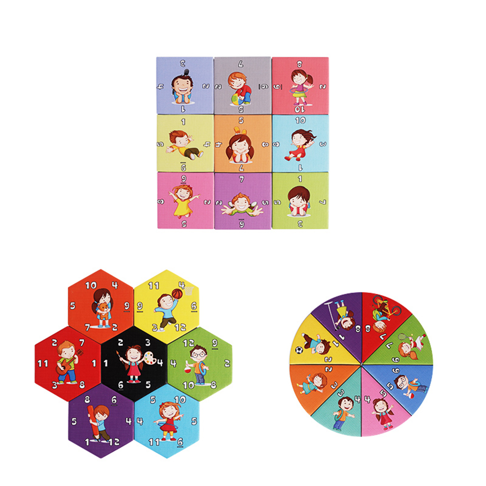 Be the first to make the shapes with matching numbers on sides of the pieces.