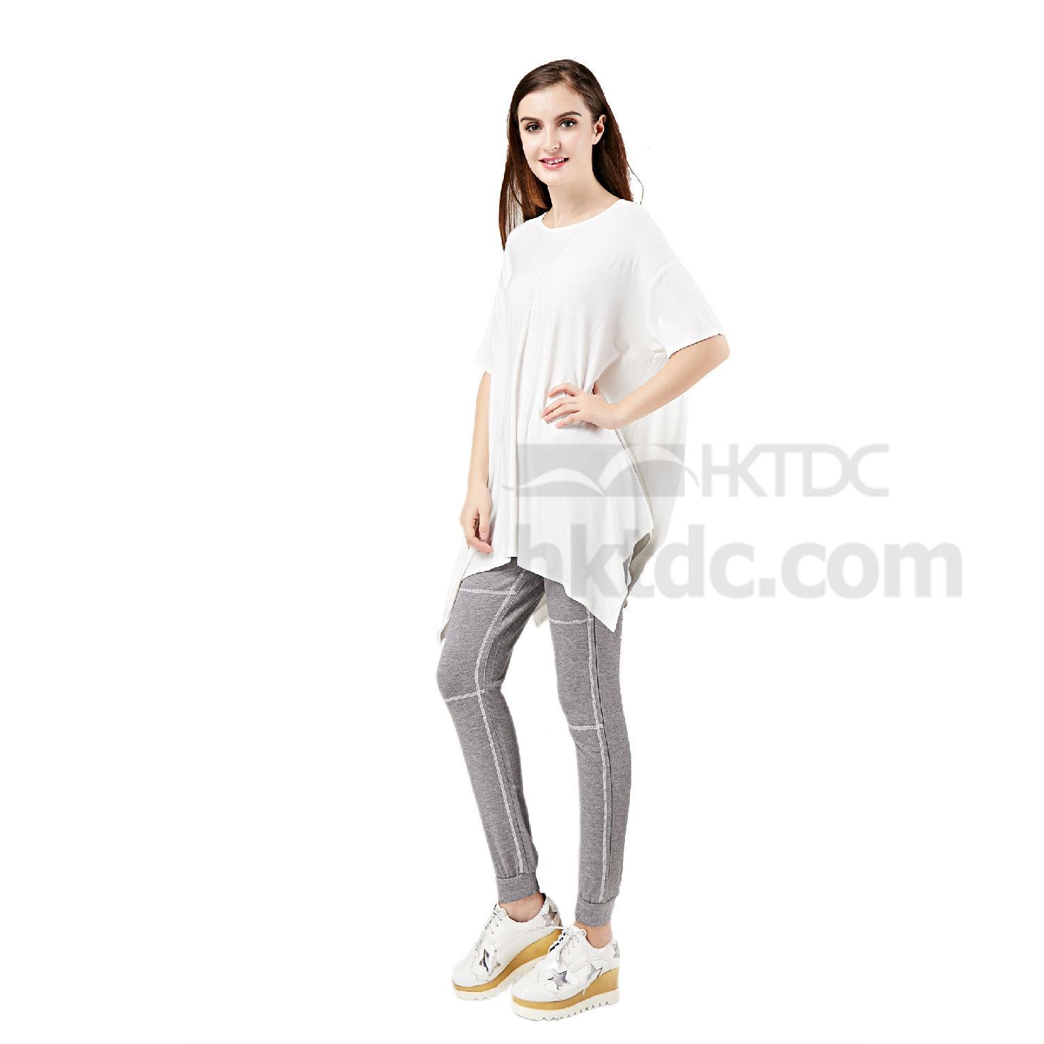 Manufactured of 95% bamboo and 5% spandex, this ladies t-shirt is tailored in an oversized fit featuring a wide and longline cut with dipped sides. The wide scooped neckline and the bell sleeves with dropped shoulder seams make this t-shirt comfortable yet stylish.