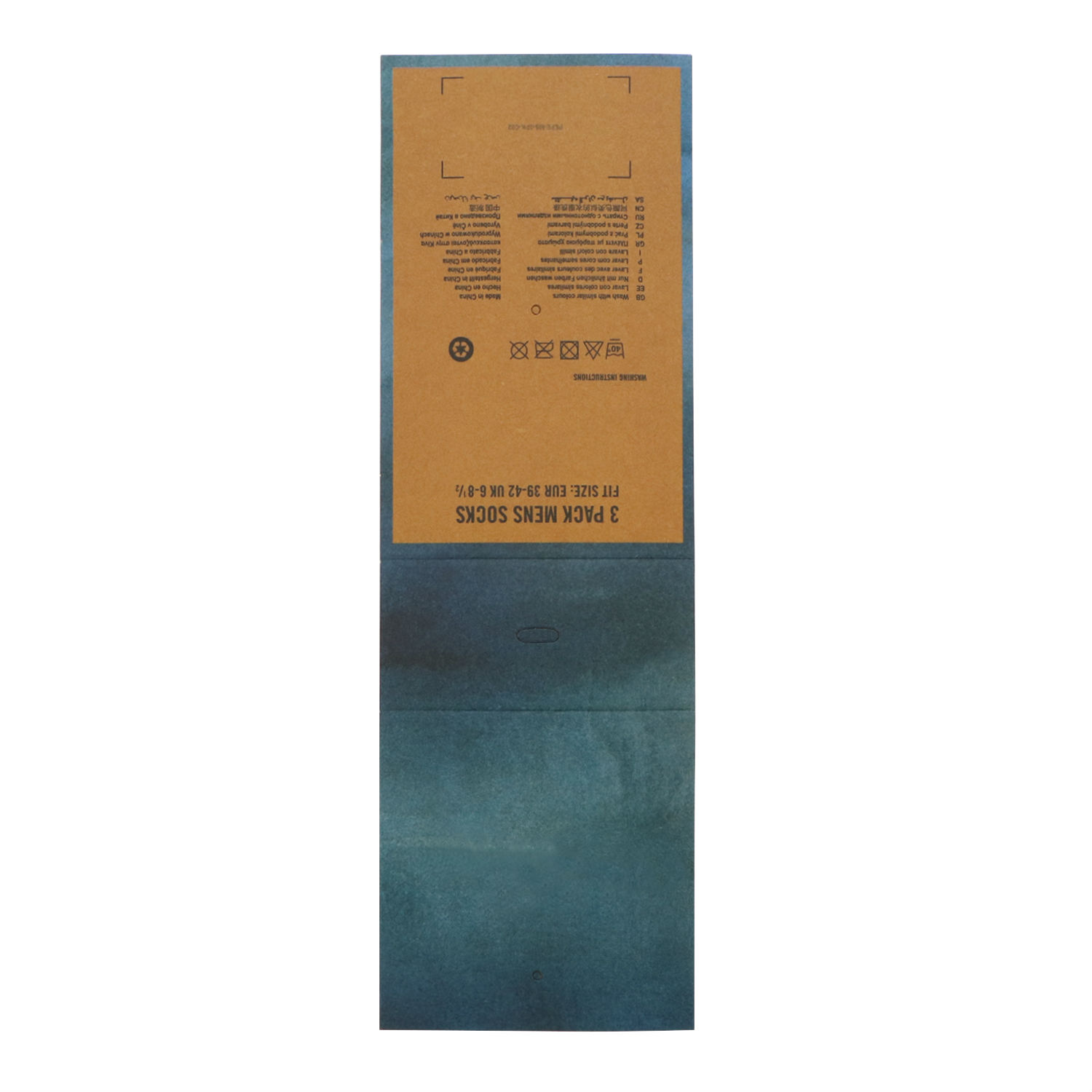 Secure your newly designed socks with this paper tag. This paper tag comes in a rectangular shape with two folding guidelines so you can fold it up easily. It is also printed with all crucial information that your customers need to know, from laundry symbols to product name, sizes and more. This simple and neat packaging is the one you need for your socks value pack.
