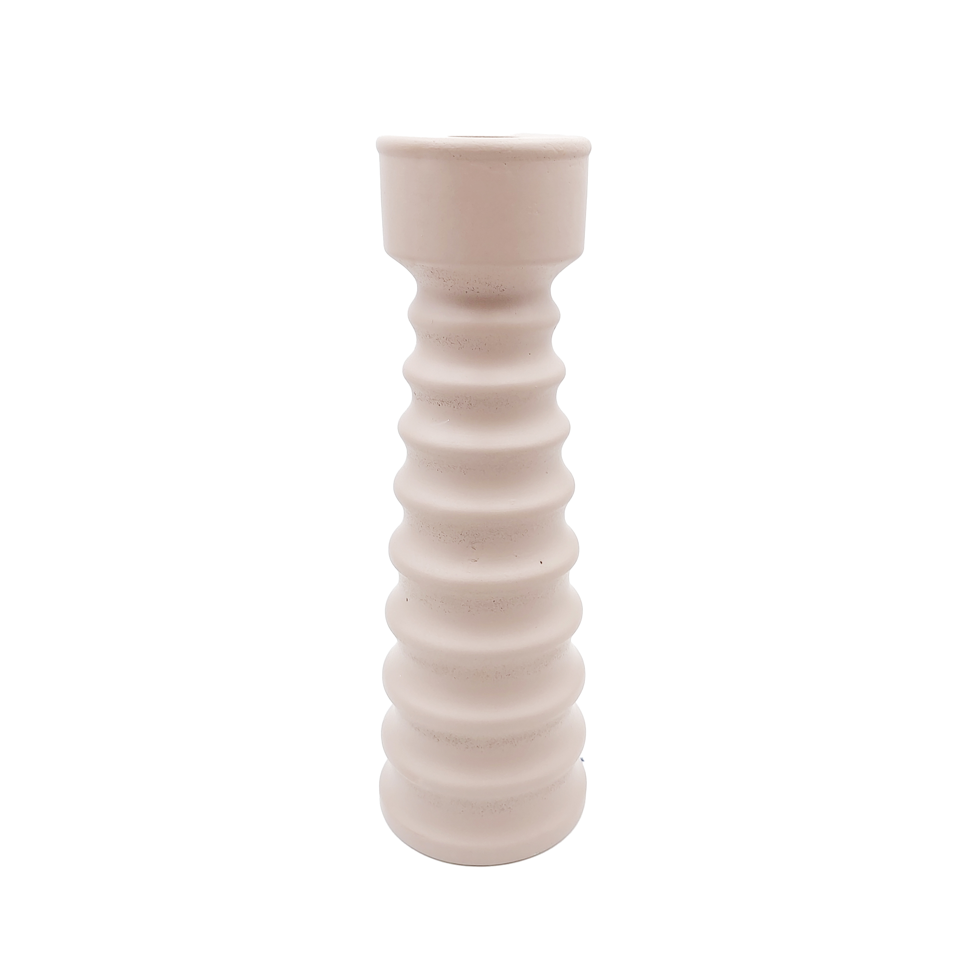 Matte Pink Ceramic Ribbed Candle Holder | Nordic Minimalist Home Decor