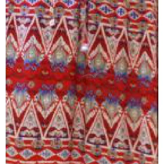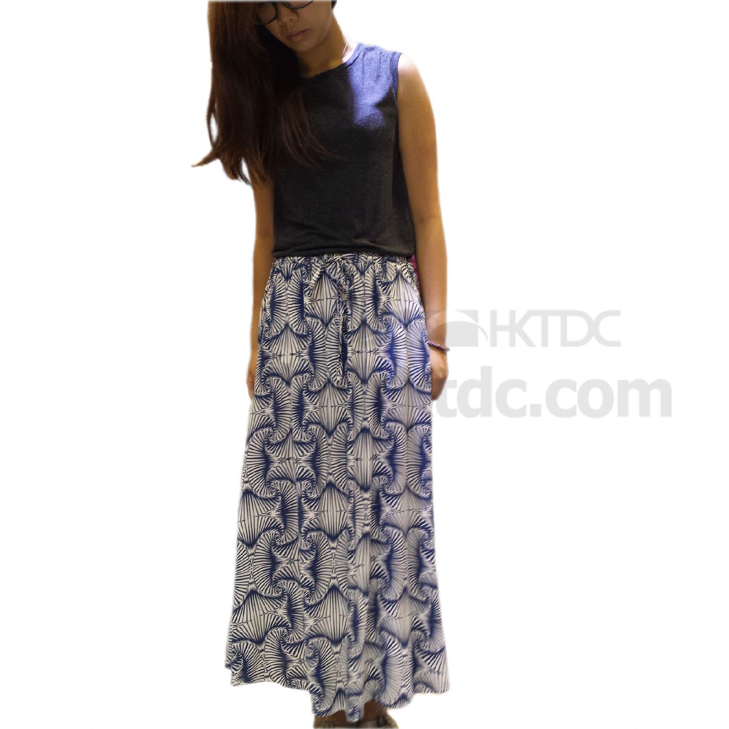 This rayon maxi skirt features an abstract tribal print and elasticized waist