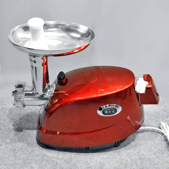 As shown is a meat grinder best for home or commercial use. Made of fine aluminum, this meat grinder is known for its durability and quality. The unique inner connect structure design contributes to the especially long life-time of this meat grinder than others.