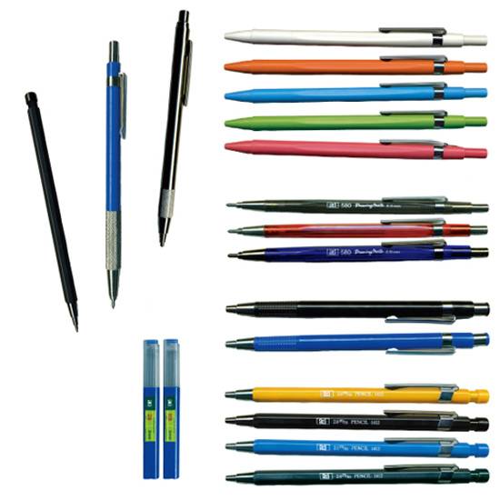 The featured items are mechanical pencils with various designs for the different thickness of lead. These pencils are ideal for drawing and sketching, with a maximum thickness of 2.0mm.