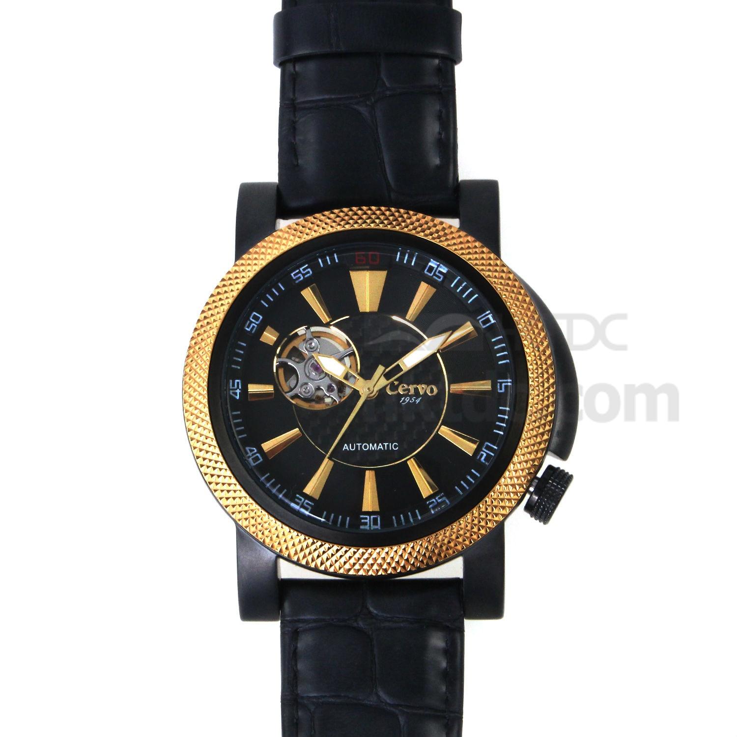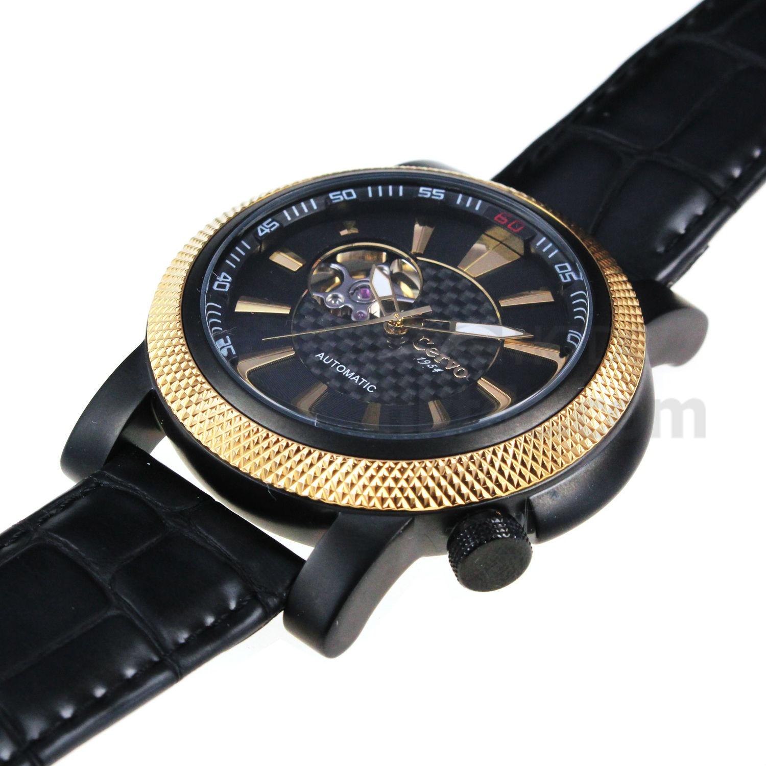 With this dark and sophisticated automatic watch, you can virtually reveal your higher social status without a single word. This luxurious self-winding watch possesses every detail needed to boast high class: gold-plated bezel, skeleton design movement and genuine leather strap. The masterpiece comes in stick hour markers and dauphine-style hour and minute hands. Add this fashionable item to your wristwatch collection now!