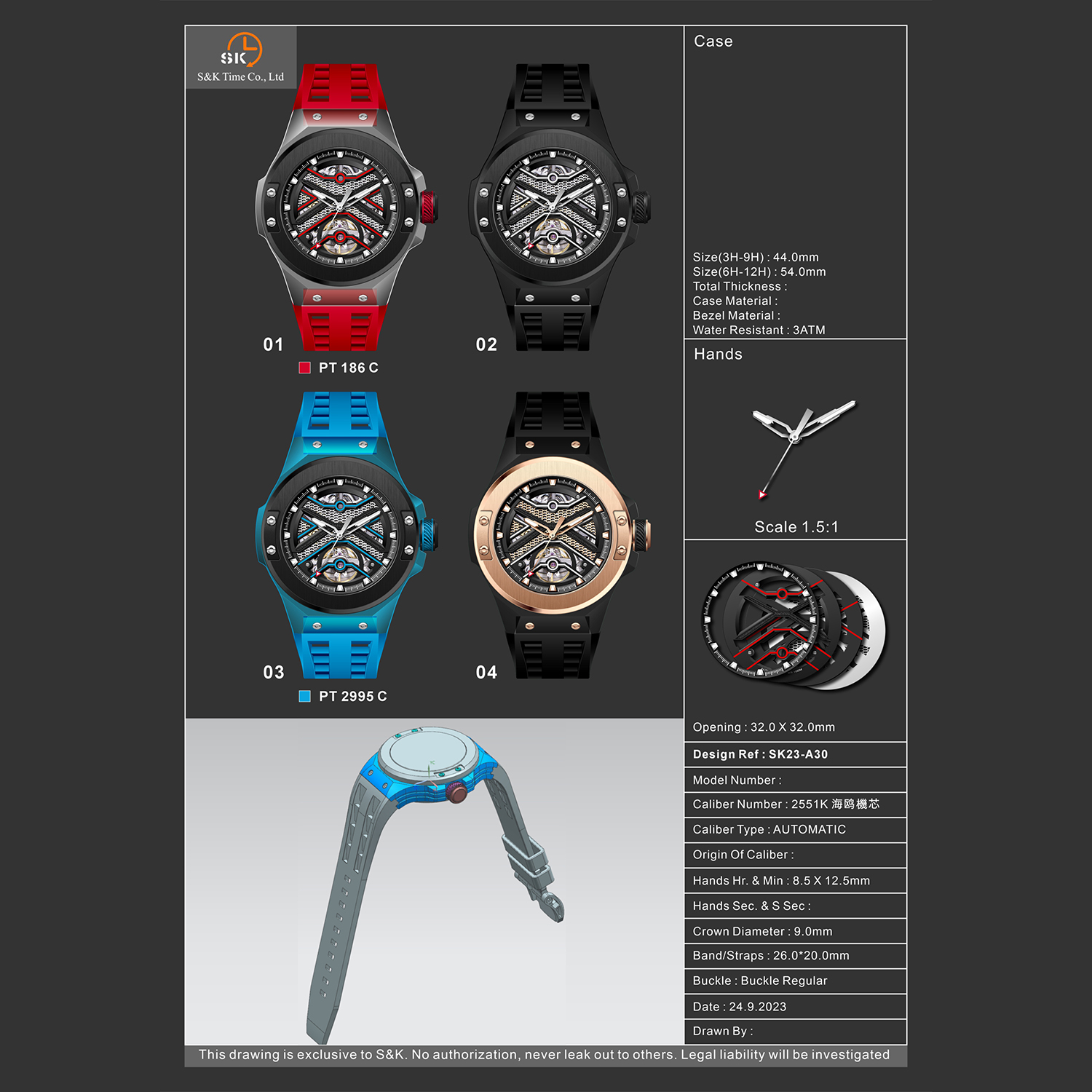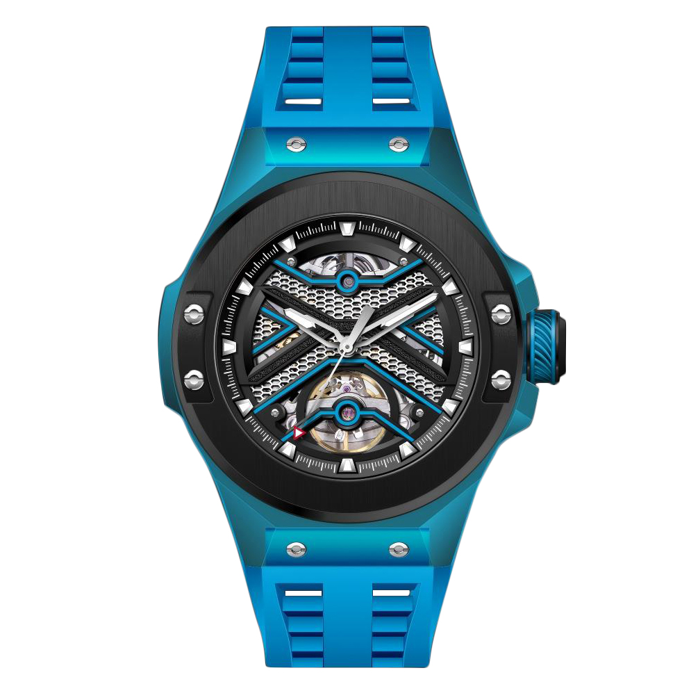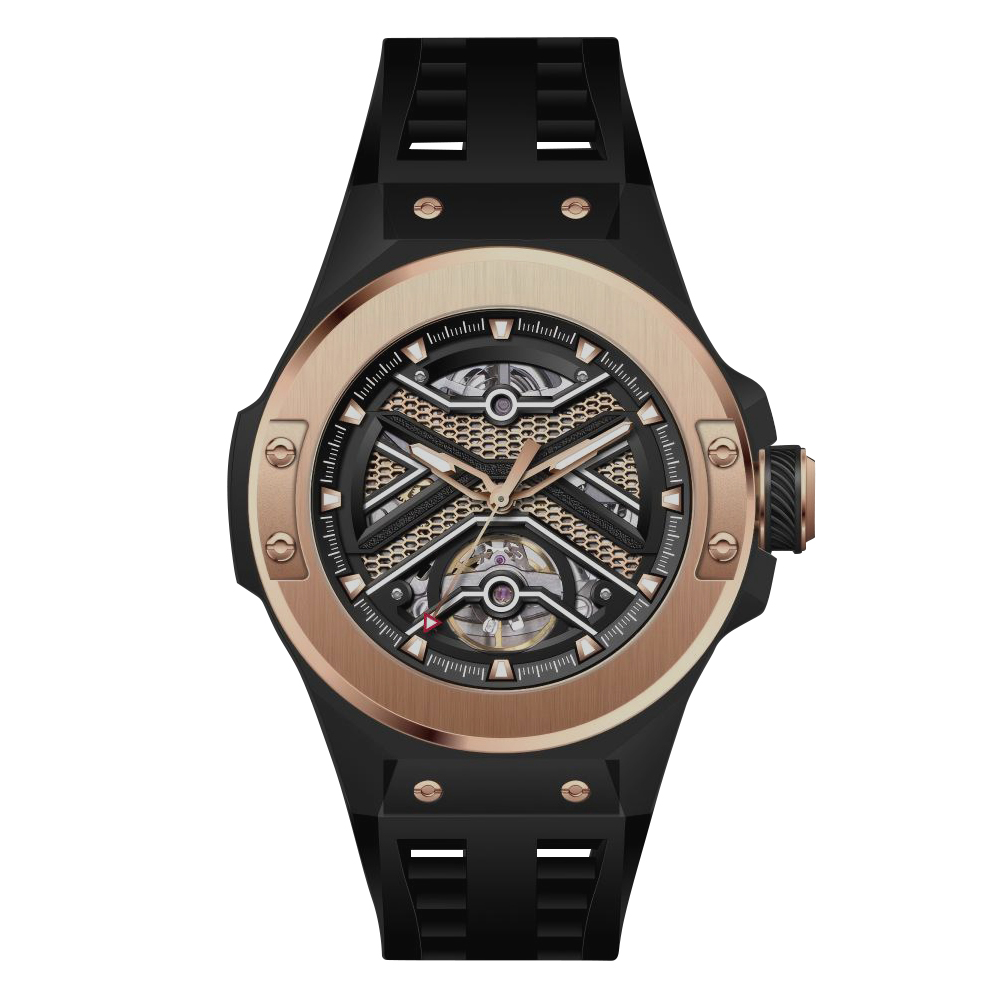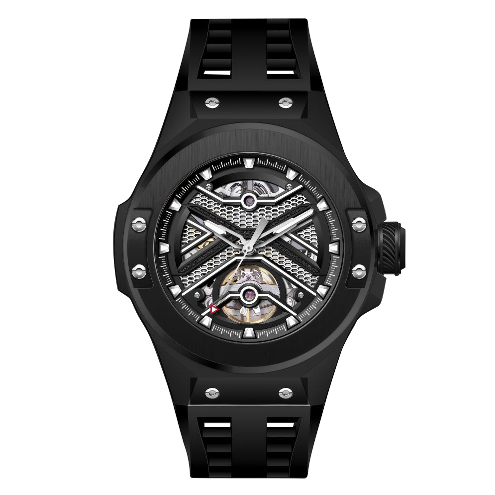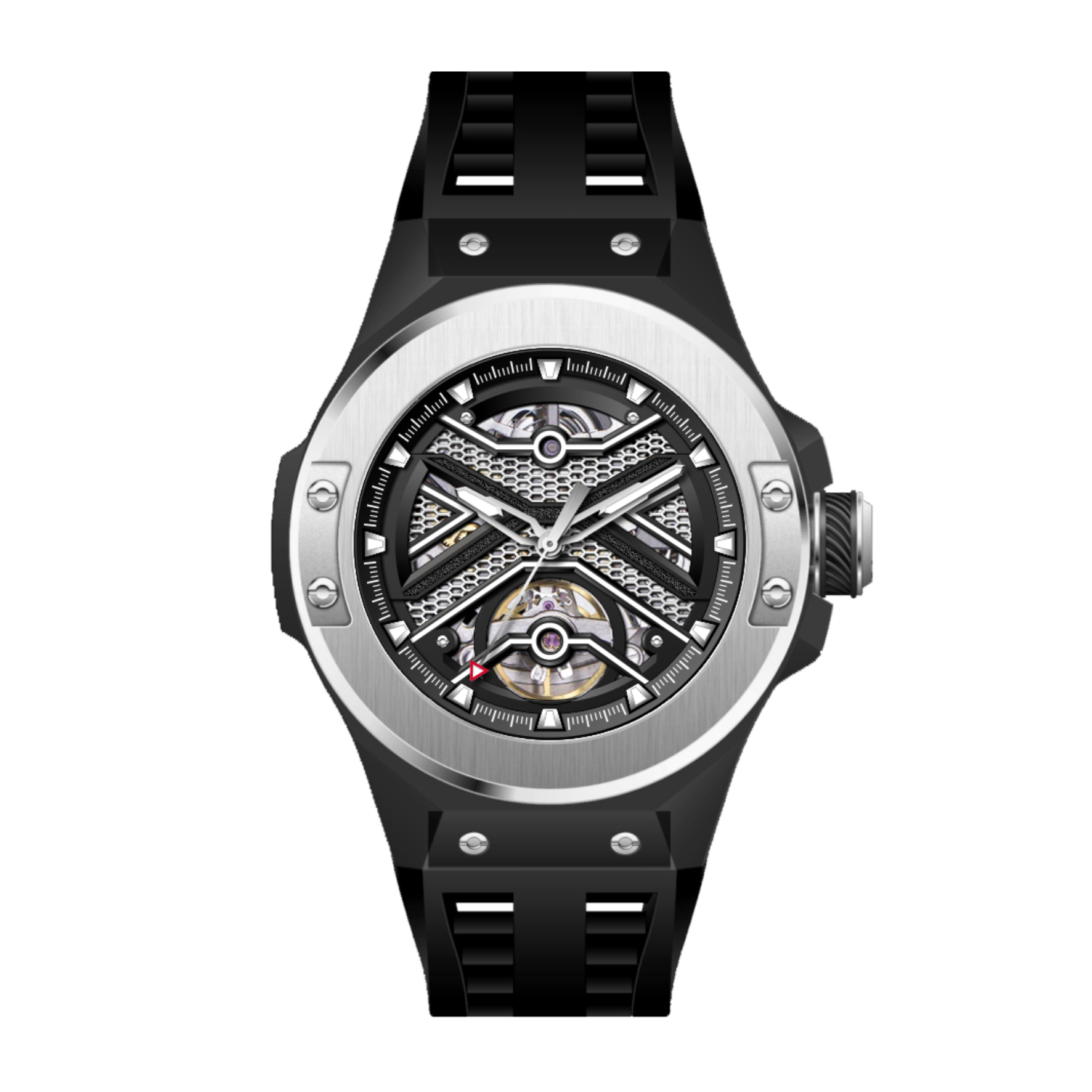 This self-winding Mechanical Watch draws attention with its distinctive design that features a striking mesh-detail dial inspired by industrial aesthetics and a bold cut-out strap. At its core is the renowned Seagull mechanical movement celebrated for its precision, reliability and exceptional value.
