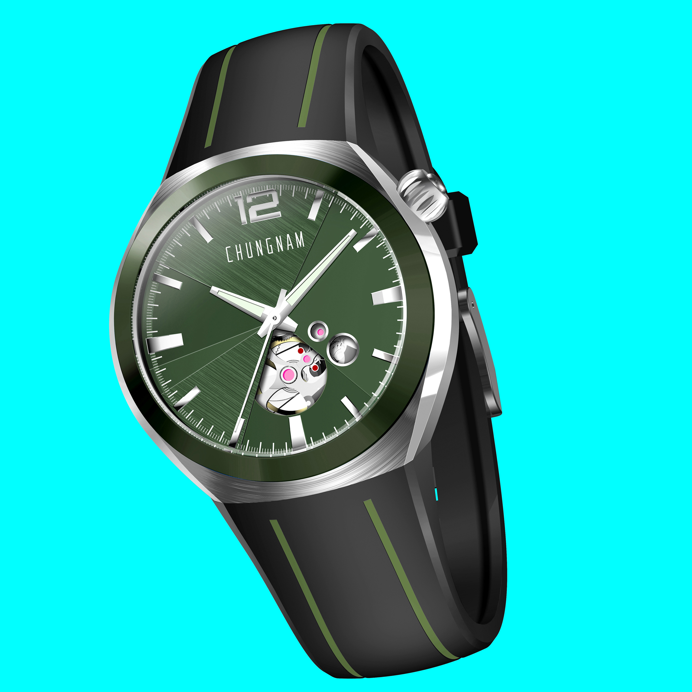 Japanese mechanical movement, 5 ATM water resistant, steel case and silicone strap.