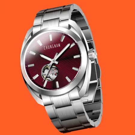Japanese mechanical movement, 5 ATM water resistant, steel case and steel bracelet.