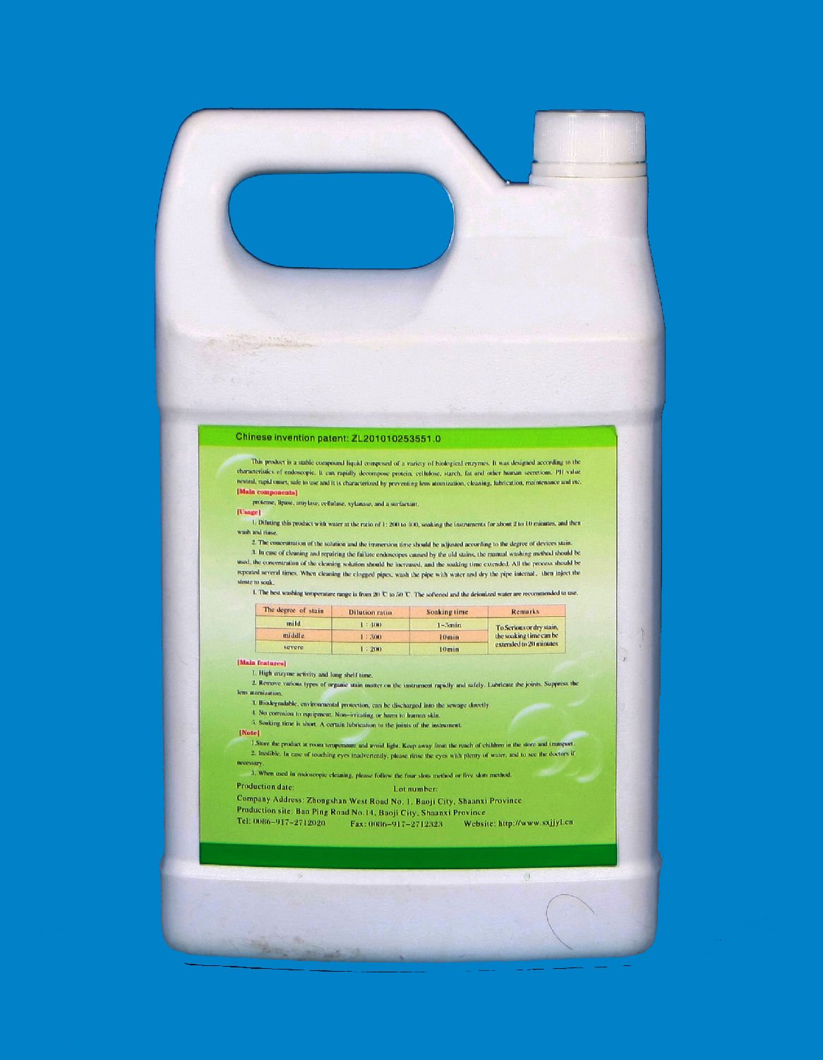 [Usage] 1. Dilute this product with water at the ratio of 1:200-400. Soak the instrument in the diluted solution about 2-10 minutes, wash, and then rinse with clean water.