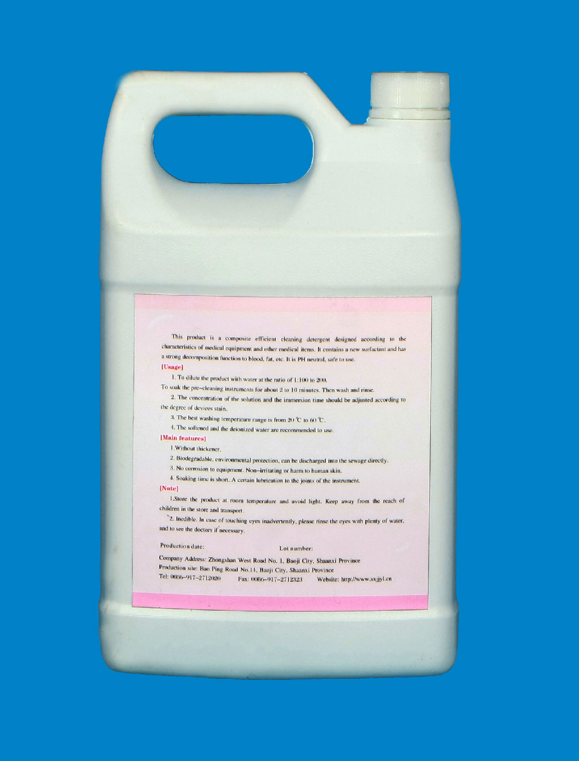 This product is a composite efficient cleaning detergent designed according to the characteristics of medical equipment and other medical items. It contains a new surfactant and has a strong decomposition function to blood, fat, etc. It is PH neutral, safe to use.