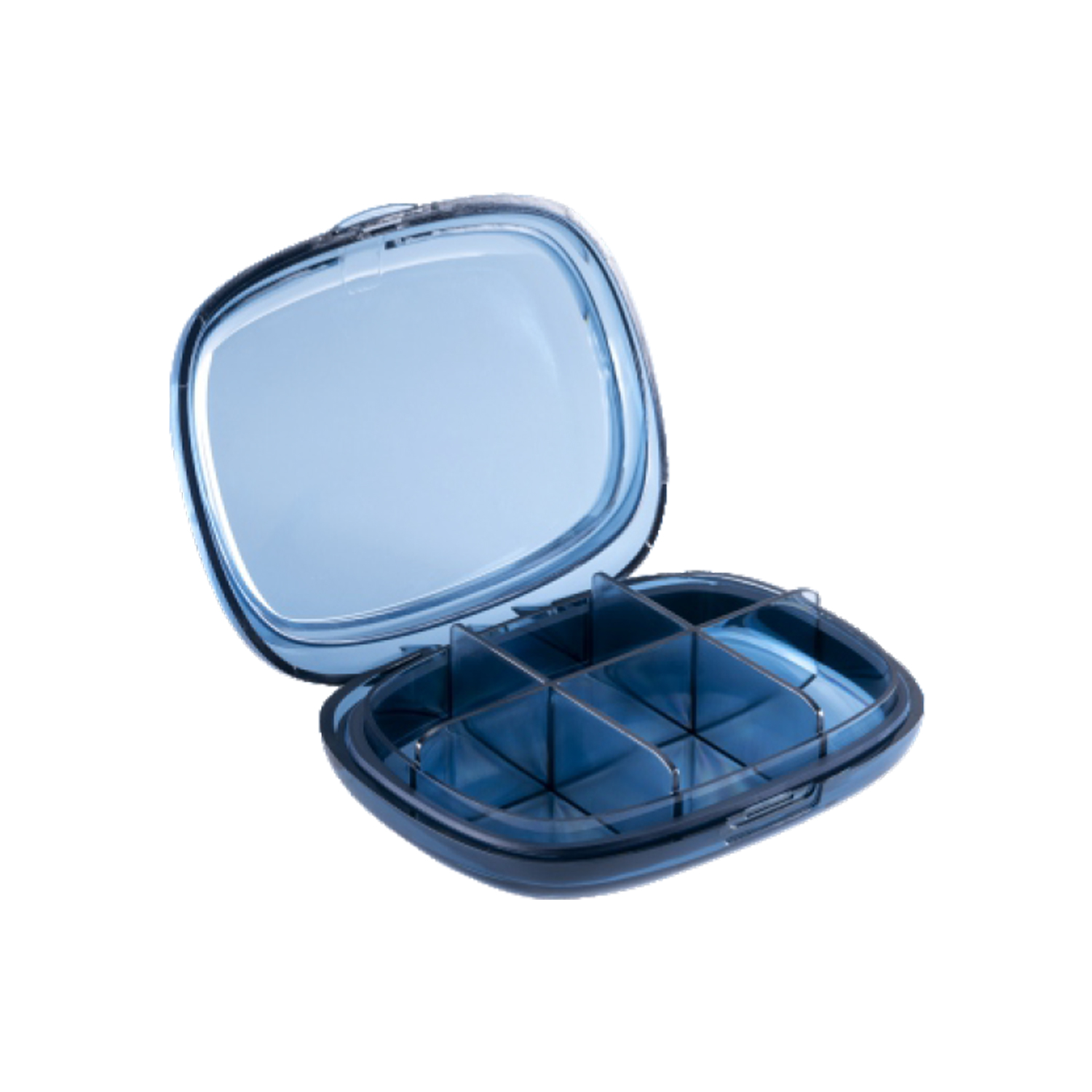 It is made of ABS and PS. Medicine users can accurately divide medicines according to doctor's orders. lt is convenient for the user to put the medicine to be eaten into the medicine compartment according to the dose for storage, so that it can be carried and taken on time. Store in a dry, ventilated place away from heat sources. Do not mix with chemicals or direct sunlight.