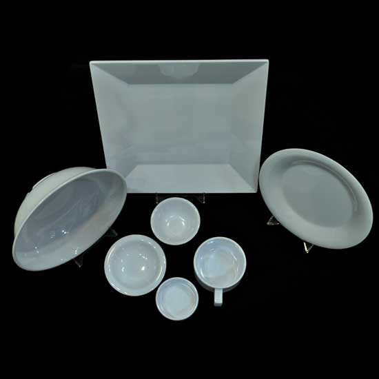 Shown here is a set of melamine kitchenware with an elegant and minimalist look. The high-quality melamine construction of this kitchenware set ensures a sturdy and durable structure for frequent use. This glamorous kitchenware set is a good addition to decorate your dining table.