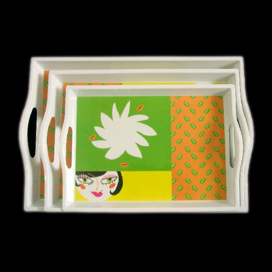 The serving tray set is meticulously decorated with innovative patterns. The tray set is designed to be non-poisonous, heat resistant and shatterproof. It is surely idea necessities for modern families, restaurants and hotels.
