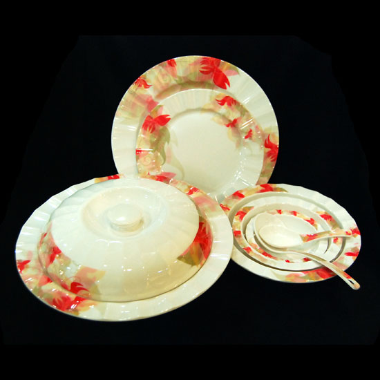 This alluring tableware set comprises plates and spoons. The tableware features gorgeous floral prints for a touch of elegance. Made of melamine, the versatile set promises first-rate durability and rugged construction.