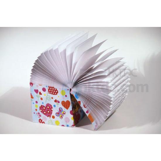 Shown here is a notepad cube specially designed for your quick scribbles. With premium paper sheets for comfortable writing surfaces and tough binding to be carried around with ease, this cube will save you time and efforts for the best note-jotting experience. There is also the bonus delight of a cover printed with colorful heart-shape pattern as shown, or indeed any personalized motifs to wrap around your notes.