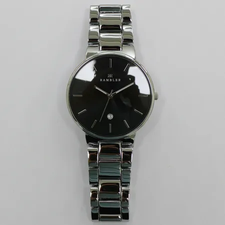 Enliven your black suit with this classy analog watch. Comprised of solid metal alloy, the ravishing wristwatch boasts a minimalist appeal with simple stick hour markings alongside with a conventional date wheel situated at 6 o’clock. Assembled with an oyster watch band, the rugged piece flaunts optimal water resistance to withstand spills and raindrops.