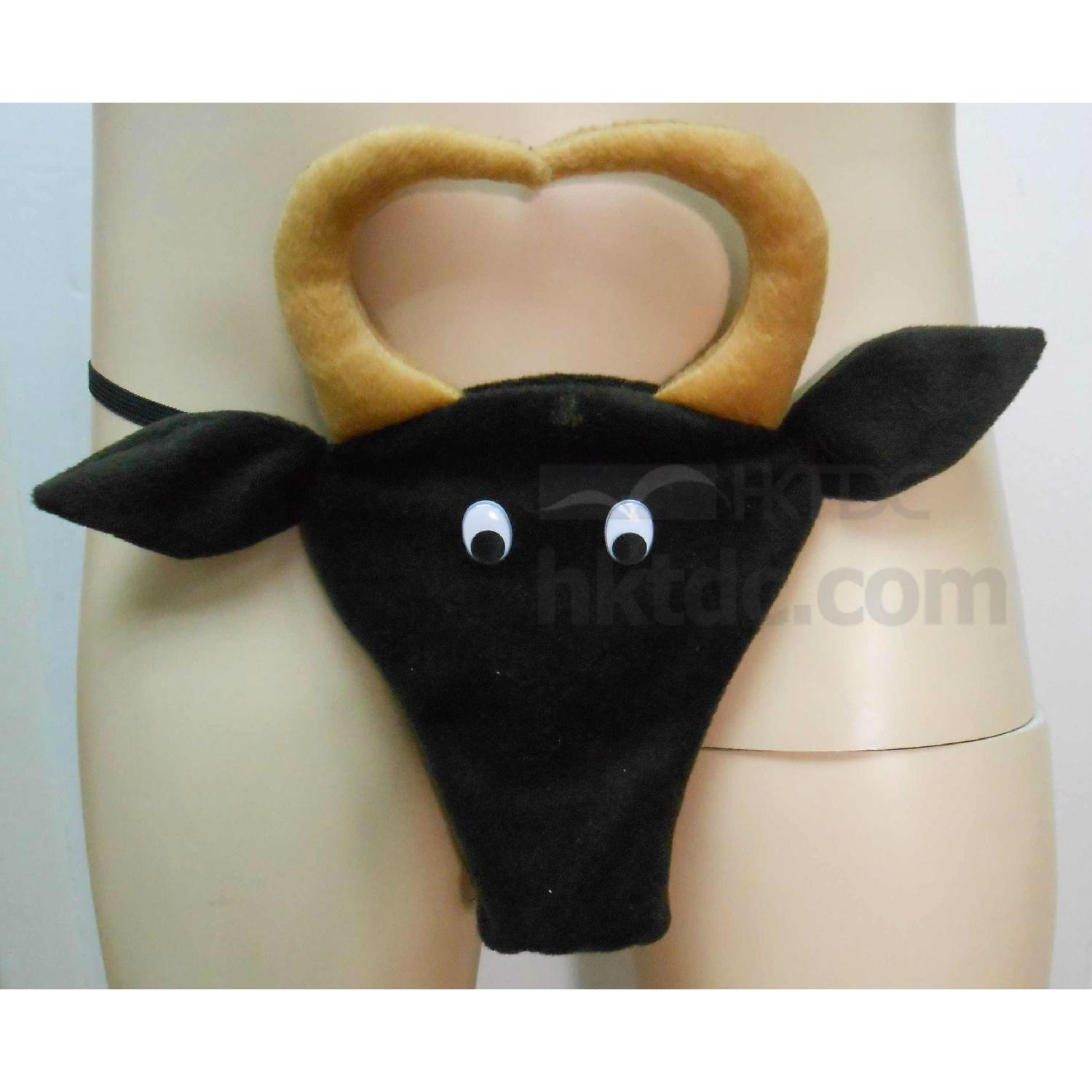 Displayed here is a pair of wild and sexy briefs for men. The briefs features an bull head shaped crotch pouch with two googly eyes and two large horns. They have an elastic strap for wearing and are designed to provide sufficient coverage.