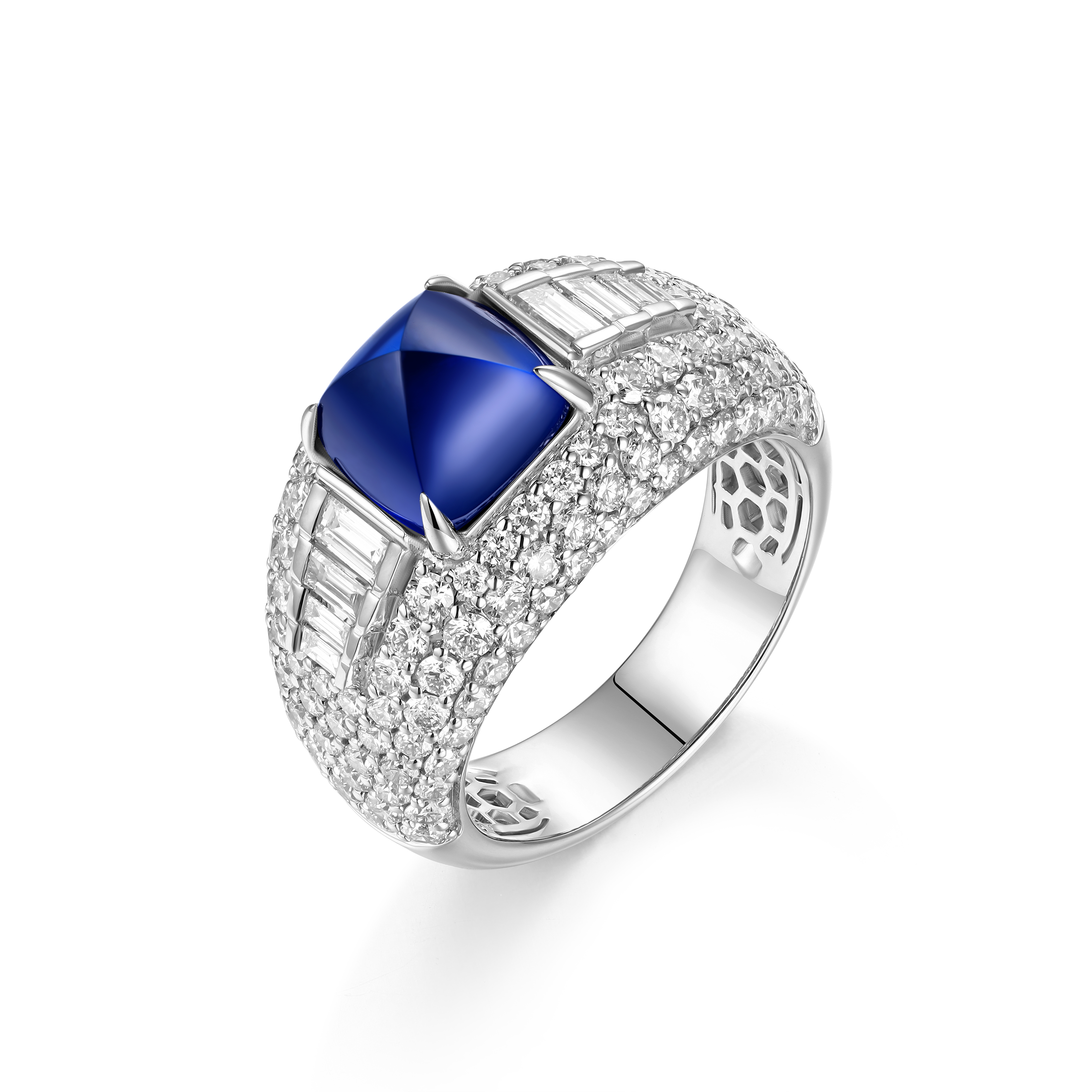 High Quality Men ring with Gemstone in Centre with Baguette and Round Natural Diamonds