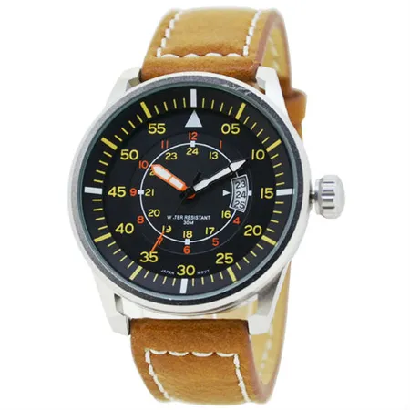 - Black dial with yellow detailing.
