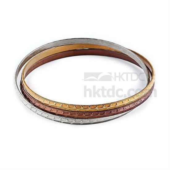 Complete your outfits with this stylish bangle set. Coming with three interconnected bangles , it flaunts a triple-toned appeal. The bangles are finished in distinctive texture for a subtle detail. Low-profile yet eye-catching, this bangle set is an easy mix-and-match accessory for daily outfits.
