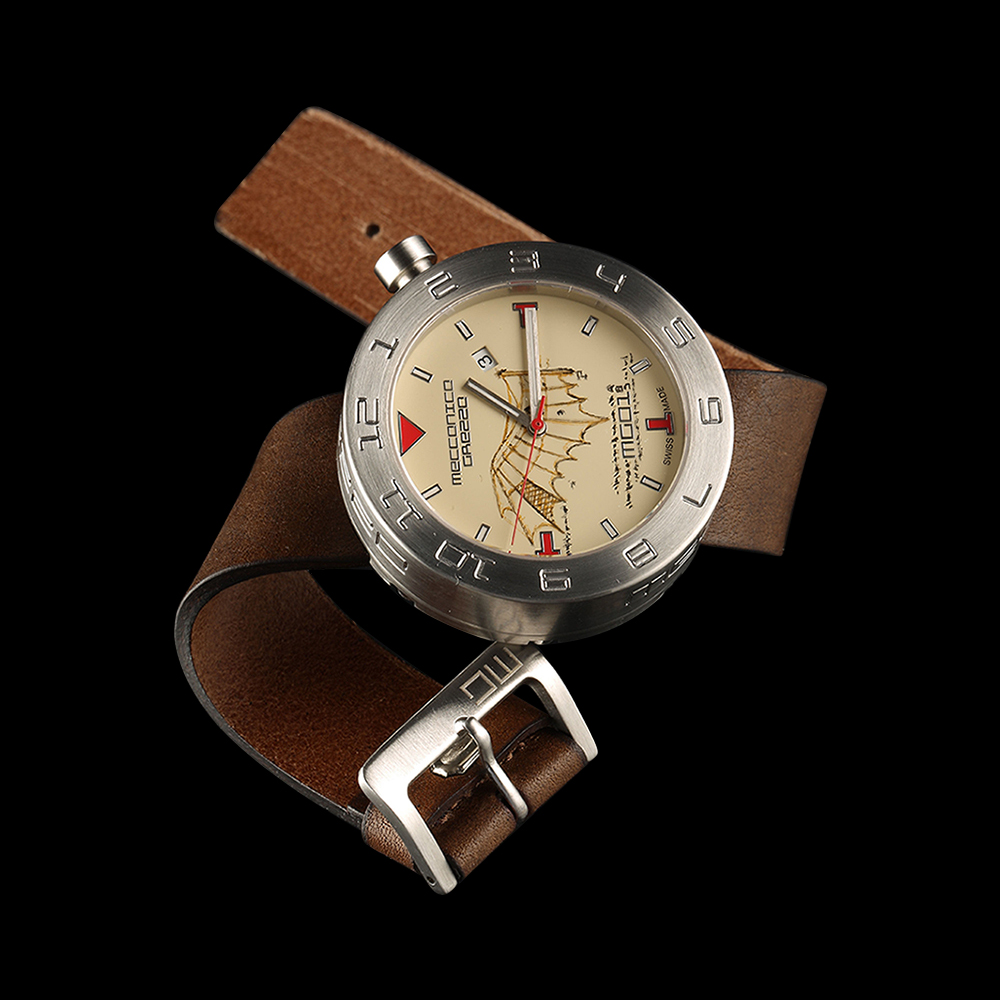 Wrap yourself in unrivaled sophistication with this statement-making wristwatch. Standing the test of time with a solid steel case, the dignified piece is accented with the divine sketch work of Leonardo da Vinci’s flying machine to convey a devilish sense of refinement. Loaded with a masterly polished 12-hour bezel, the unsurpassed handicraft is rounded off with a premium buckle strap to boast a smooth and cozy hug around your wrist.