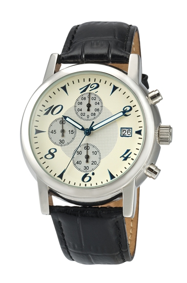 This men’s timepiece showcases a light yellow dial with luminous dark green clock hands and markers, creating a harmonious contract. This chronograph watch features an alloy case and sits on an elegant dark brown leather strap with pin buckle, making it compatible to both casual and formal events.