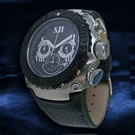 This is a quartz analog wristwatch with a circular stainless steel case and wide genuine leather straps. It boasts a black dial with subdials for date display. The 5 ATM water-resistant function makes it an ideal timepiece for water activities. This watch is a chic and versatile item to enhance the collection of gentlemen.