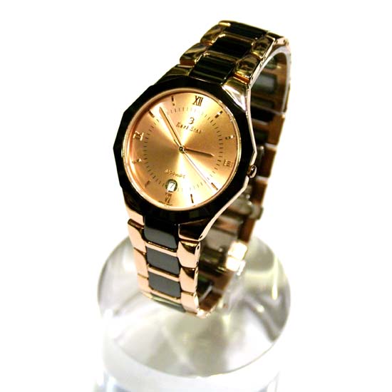 This men's analog watch boasts a ravishing design. The round dial is nicely crafted with Roman numerals and a day display window. The entire ceramic watch shines with alluring radiance in a rose gold shade. Embedded with sapphire crystals, this analog watch simply gives out